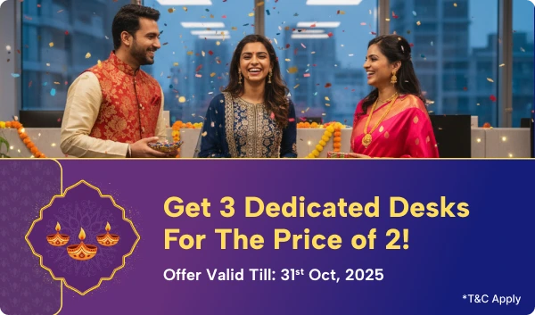 We offer Private Cabins , Dedicated Desks, Flexi Pass, Day Pass, Meeting Rooms, and Event Space to suit different needs.